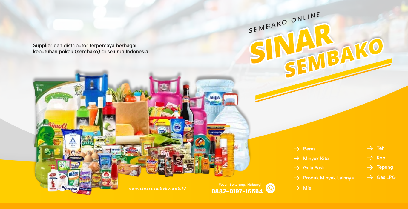 Sinar Sembako adalah supplier dan distributor terpercaya berbagai kebutuhan pokok (sembako) untuk rumah tangga, pengecer, dan bisnis di seluruh Indonesia. Kami berkomitmen untuk menyediakan produk berkualitas tinggi dengan harga terjangkau, memastikan setiap pelanggan mendapatkan kebutuhan sehari-hari mereka dengan mudah dan efisien.